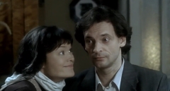 кассы". Даже аутичная Ольга в исполнении Друбич из совершенно Тема продажных писателей и художников - также совершенно не раскрыта. Так, мелкие спекуляции, ничего более. Идею о писателе, тайком описывающем жизнь своих близких, Коростышевский спер из блестящего английского фильма "Все возможно, бейби", но достойно воспользоваться ею он не смог даже рядом. Продажный Саша получился совершенно неестественный, а уж истерика на лестнице - это просто-таки совершенно бездарно написано, поставлено и сыграно. За образ Мерзкого издателя Коростышевскому тоже жирная двойка: это же надо было изобразить из него какого-то шакала ротационных машин... Интересно, Коростышевский вообще в курсе, что издатели не шляются сами по типографиям и не рассматривают полосы, вылезающие из офсетных агрегатов? Я понимаю, что он старательно формировал образ, но можно было хотя бы для разнообразия выяснить, что собой этот образ представляет на самом деле... Кроме того, Коростышевский не избежал обычной беды всех дебютантов: масса моментов в фильме откуда-то позаимствованы. Сейчас, правда, уже не говорят "спер", а говорят "цитирует", но сути дела это не меняет - заимствования бросаются в глаза. От образа и некоторых особенностей постановки "Амели", которые здесь проявляются, до практически точного копирования определенных кадров из других фильмов - как, например, захлопывание двери грузового лифта в разговоре Мерзкого издателя с Продажным писателем и так далее. Также отдельное спасибо следует сказать промоутерам: это же надо было для ТАКОГО фильма сделать ТАКУЮ рекламную кампанию... Такое ощущение, что они вообще не знали, что именно рекламируют, а кампанию разрабатывали по принципу "лишь бы в глаза броситься, а там по фиг". Это примерно как "Амели" рекламировать, вывозя в центр города платформу с жирными стриптизершами, - полное несоответствие рекламной кампании духу фильма. Теперь, после перечисления всех недостатков, можно сказать о достоинствах. Они есть. Это большинство второстепенных ролей и некоторые эпизоды. Второстепенные роли почти все как минимум хорошие, а временами просто блестящие! Прежде всего - просто поразил Балуев. Он играет истеричного режиссера - и как играет! Я думал, что Балуев навсегда застыл в образе каменнолицего кагэбэшника или каменнолицего же криминального авторитета - ан нет! В этом фильме продемонстрирован такой фонтан чувств и эмоций, причем в совсем небольшой сцене, что я на Балуева посмотрел совершенно другими глазами. Жаль, что в кино его обычно задействуют в одном и том же образе, - как выяснилось, это совершенно не вина актера. Вторая отличная, хотя и эпизодическая роль - блистательная Ольга Волкова, играющая Татьяну Ивановну, актрису из детского театра. Татьяна Ивановна всю жизнь изображает мальчиков. Амплуа такое. Кроме того, Татьяна Ивановна, как водится у актеров, крепко поддает. Что из этого сделала Ольга Волкова - это просто нужно видеть. Ради одного этого эпизода можно простить всю "Дуру" со всеми ее недостатками... Отлично также сыгран Агеев (Игорь Золотовицкий), профессиональный Продажный писатель. Сценаристы придумали совершенно идиотский эпизод, как Агеев по просьбе Саши прикадривается к Ульяне, и он бы остался идиотским эпизодом, если бы не Золотовицкий! Его Агеев - это что-то неимоверно - нахально - обаятельно - циничное, а ф