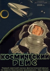 Тем не менее, техническая составляющая «Космического рейса» впечатляет. В качестве средства полёта главные герои использовали ракетоплан, запускаемый по параболической траектории. Как известно, в реальности от этой идеи, как неосуществимой, впоследствии пришлось отказаться. Но в те годы она была главенствующей, и сам Циолковский сделал для фильма 30 чертежей ракетоплана. Правда, вызывает улыбку корабельный штурвал и панель управления, где вместо кнопок, клавишей или хотя бы тумблеров располагаются какие-то вентили, более похожие на водопроводные. Всё это даёт основания отнести фильм не только к жанру космической фантастики, но и увидеть в нём определённые черты космического дизельпанка. Значительная часть экранного времени отдана непосредственно полёту, и надо отдать должное создателям, сумевшим очень реалистично изобразить невесомость – и это при тогдашнем уровне съёмок! Специально были выстроены декорации космического корабля, где размещался подвижный фон, который вращался в отношении неподвижных актёров, подвешенных на тросах. Тросы для маскировки были специально окрашены в цвет фона. В результате создавалась полная иллюзия невесомости, что много лет спустя оценили даже настоящие космонавты. В картине вполне органично присутствуют мультипликационные вставки. Так неоднократно в кадре появляются панорамы Москвы 1946 года, какими их видели в 30-е годы. Тут и Дворец Советов, и гигантская эстакада, и другие величественные здания и сооружения, которые в реальности так и не были построены. Реалистично выглядят мультипликационные сцены в ангаре с огромными ракетопланами, конструкциями, передвигающимися между ними людьми. И, наконец, лунные эпизоды. Конечно, лунные пейзажи выглядят малоправдоподобно (а кто тогда знал – какие они на самом деле?), зато здорово показано передвижение героев по поверхности Луны. Фильм «Космический рейс» представляет собой интерес для современного зрителя с точки зрения того, как в прошлом представляли космические полёты, как видел это сам Циолковский. К сожалению, великий учёный не смог увидеть фильм – он не дожил до премьеры, которая состоялась 21 января 1936 года, всего четыре месяца. Игорь BIN Данная рецензия выражает субъективное мнение автора, которое вполне может не совпадать с Вашим. Смотрите сами и делайте собственные выводы.