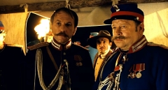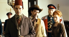 Среди этих особей - весьма важные gros bonnets. Во-первых, это сам командир Соболев, который просит Варвару Андреевну называть его по-свойски mon général. Кроме того, среди вьющихся вокруг Суворовой личностей - французский корреспондент д'Эвре (Дидье Бьенэм), чьи пронзительные голубые глаза заставляют se troubler ее женский raison, румынский князь (Виктор Вержбицкий), который очаровывает мадмуазазель Варвару своими небрежно-аристократическими manières, поручик Ржевский-Зуров (Дмитрий Певцов), чей молодецкий натиск и "madame, не позволите ли, madame, вам влепить baiser ardent" заставляют ее les sens трепетать, как perdrix в крупных paume неистового hussard. Таким образом, Суворова выходит на первый план, и именно она должна раскрыть тайну Анвара-эфенди под мудрым руководством Эраста Петровича, который из скромности отошел на второй план... В пути их ждет масса страшных приключений. Но они с честью пройдут все испытания, в результате чего... Тут я должен прерваться, чтобы не допустить всяких spoilers, как говорят эти французы... ***