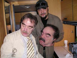 Начали съемки с классической сцены на Патриарших прудах, где председатель одной из московских литературных ассоциаций, сокращенно — МАССОЛИТ, Михаил Александрович Берлиоз объясняет, сидя на лавочке, поэту Бездомному, что и Христа не было, и Сатана выдумка. К ним подсаживается странный господин, по виду иностранец, и сообщает, что ни на какое собрание Михаил Александрович сегодня не попадет, потому что Аннушка уже разлила масло. И действительно, ближе к вечеру ему отрубит голову вагоновожатая трамвая, русская женщина, комсомолка. Поскольку господин Воланд, иностранец, представившийся специалистом по черной магии, начинает свои нехорошие дела в столице с литератора Берлиоза, то мы решили обратиться к самому литератору Берлиозу — исполнителю этой примечательной роли. Он же сценарист, художник, режиссер, он же актер Александр АДАБАШЬЯН. — Александр Артемович, неужели вас совсем не смутило приглашение на такую роль? — Мне очень нравится этот персонаж, Берлиоз. Блестяще образованный, болтун, циник, идеолог просвещенного атеизма. Меня только удивило, что Бортко не стал менять мою внешность. Берлиоз-то, как написано в романе, лыс и носит огромные очки. Меня же только чуть взлохматили. — Но еще ведь и сделали копию вашей головы!.. — Это было оговорено в договоре. Мне позвонили и сказали, что хотят меня видеть на предмет изготовления моей головы. Делали мне ее на бывшей студии научно-популярных фильмов, что за Речным вокзалом. Там сидят очень лихие ребятки. Они же частично делают Кота Бегемота. Кот будет сложный — и кукла типа Хрюна и Степана, и компьютерный, и живой актер (Александр Баширов), и еще маленький человек, наряженный котом. — И что же это за процедура — изготовление головы? — Посадили меня в кресло, заклеили волосы, намазали лицо вазелином, потом силиконом, а потом лицо залепили гипсом. Минут пятнадцать это все застывает. Шевелиться нельзя, дышишь ртом, ничего не видишь. Малоприятная процедура. Когда я первый раз увидел эту свою голову, зрелище было ужасное. Голова абсолютно натуралистичная, живая, с волосами, ресницами, зубами, видны вставленные глаза. — Как вас бросали под трамвай? — Нет, я только поскользнулся, а потом лег на рельсы. Падал же под приближающийся трамвай каскадер. Я бы не упал так, как надо. Я бы, наверное, упал раз и навсегда. Но в фильме есть другая интересная вещь. Во время бала выносят мою отрезанную голову, украденную Котом, с нее сходят покровы и обнажается череп. Так вот, была изготовлена и копия моего черепа. Я получил редкую возможность — принести домой собственный череп. — А вам дома не говорили, зачем ты в это полез — это же Булгаков! Мистический ужас, проклятие Воланда! — Говорили. Я резонно отвечал: почему это Диавол или Сатана должен быть недоволен, что про него снимают картину? Скорее он должен устраивать гадости тем, кто снимает про Христа! И вовсе не о Диаволе там речь. Это история про то, как, приехав в Советскую страну, Диавол со своей компанией понял, что им там делать уже нечего. Там уже без них устроено абсолютно сатанинское государство. И Воланду надо только малость подправить — изъять этого Мастера. Не нужен он им, и роман его им тоже не нужен. Они без этого чудно проживут. Вся эта сатанинская компания ничего не смогла сделать такого, что выходило бы за ряд обыденности. А начало всему — трусость одно